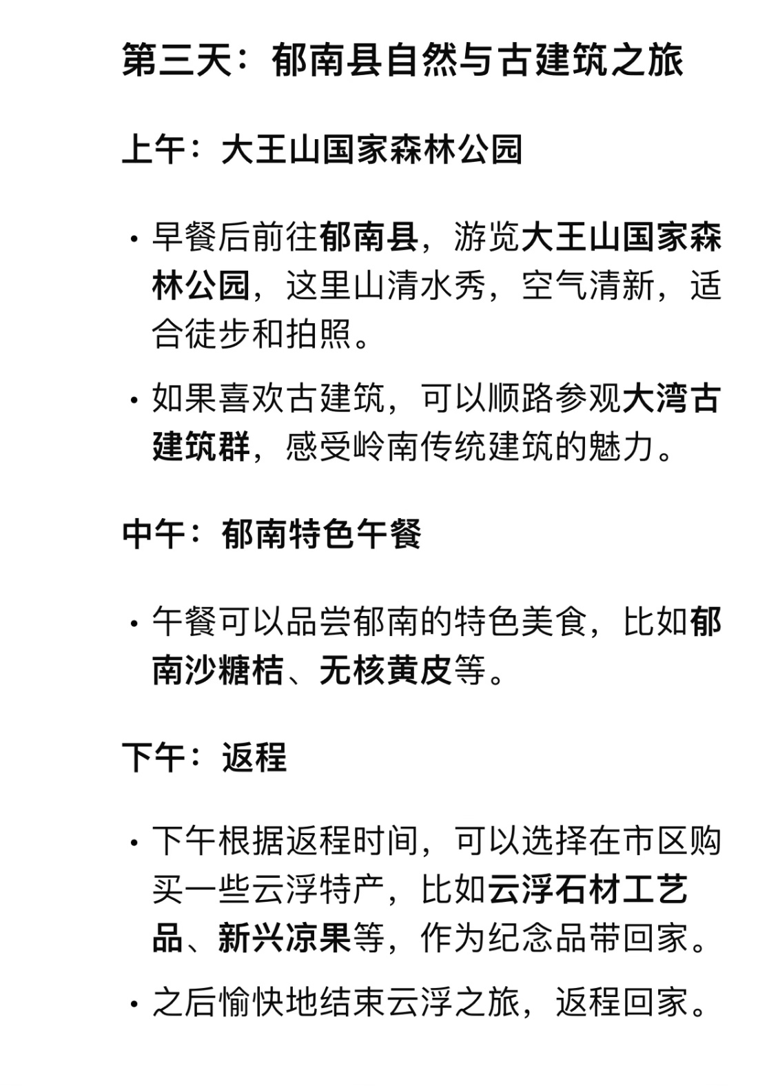 3天2夜云浮旅游行程