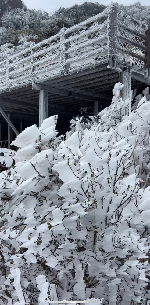 在粤北,昨天黎明连山金子山顶得志站录得-5℃的低温,金子山上雾凇、冰挂再现。